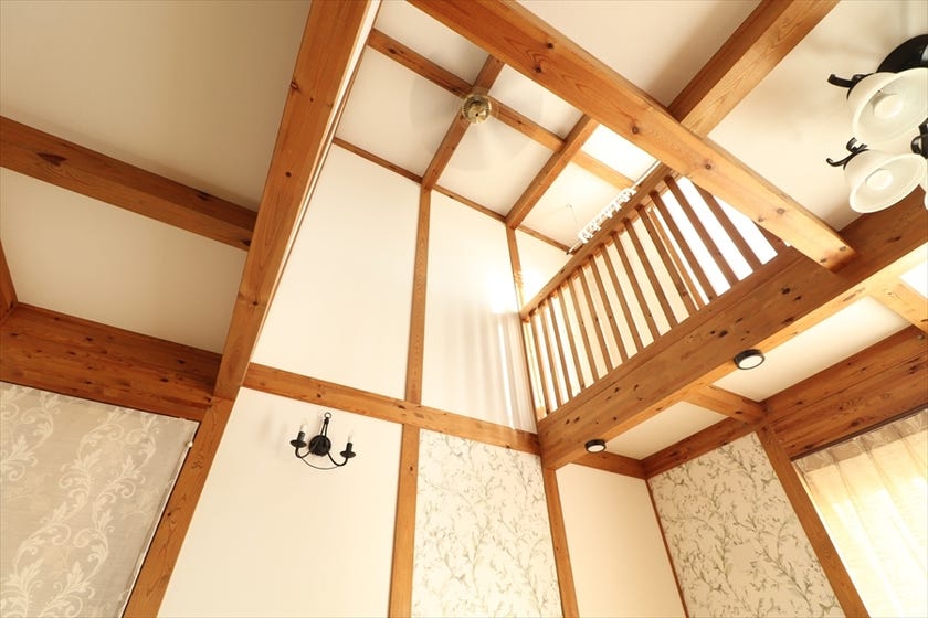 \木材が表面にあらわになっている内観/